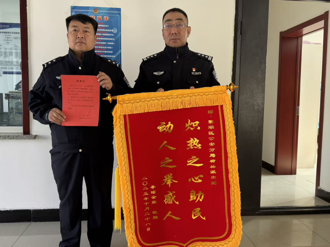 当民警将失而复得的包交到李女士手中时,她激动不已,紧紧握住民警的手连声道谢。她表示,包内的现金或许还能弥补,但老伴留下的手机是他最珍贵的念想,没想到民警如此迅速、认真地帮他找回。为了表达对民警的感激之情,李女士特意制作了锦旗和感谢信,送到派出所。锦旗上写着“炽热之心祝民,动人之举感人”,感谢信中详细描述了事情经过,并对民警的高效工作和负责态度给予了高度评价。