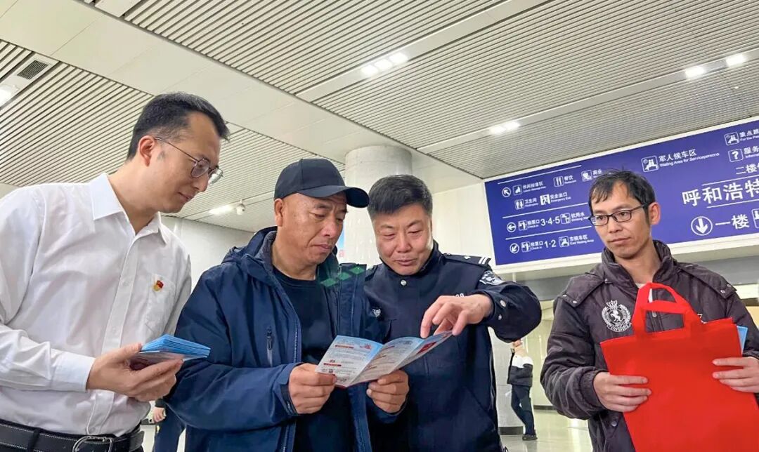呼和浩特市火车站二楼候车大厅内,一场以“学习宣传贯彻习近平法治思想,推动宪法深入人心”为主题的宪法宣传日活动正式拉开帷幕。此次活动由回民区司法局牵头组织,回民区委政法委、回民区检察院、回民区法院、回民区公安分局、回民区城管执法大队、呼和浩特第四监狱等多家单位共同参与。